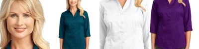 With a new, improved fit, this three-quarter sleeve blouse is a must-have basic-pair it with skirts, jeans or khakis.