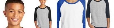 - Contrast color set-in collar and 3/4 raglan sleeve