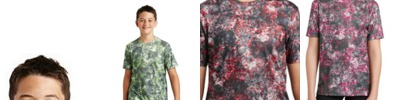 This moisture-wicking tee features an allover sublimated print that has a granite-like look.