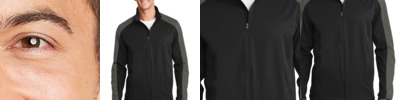 - 100% polyester knit bonded to a water-resistant film insert and a 100% polyester microfleece lining at side panels and under arms