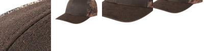 Fabric: 67/33 cotton/poly front panels; 100% polyester mesh mid and back panels Structure: Unstructured Profile: Low Features: Pigment print gives an oiled leather look Closure: Hook and loop